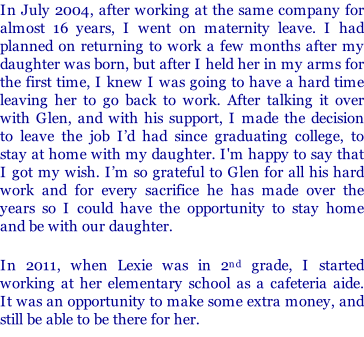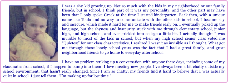 ©Copyright 2008-2018 - Toula Magi Facebook Page My dream of having a family and becoming a mom finally came true, when our daughter, Lexie, was born. A few extra tidbits: